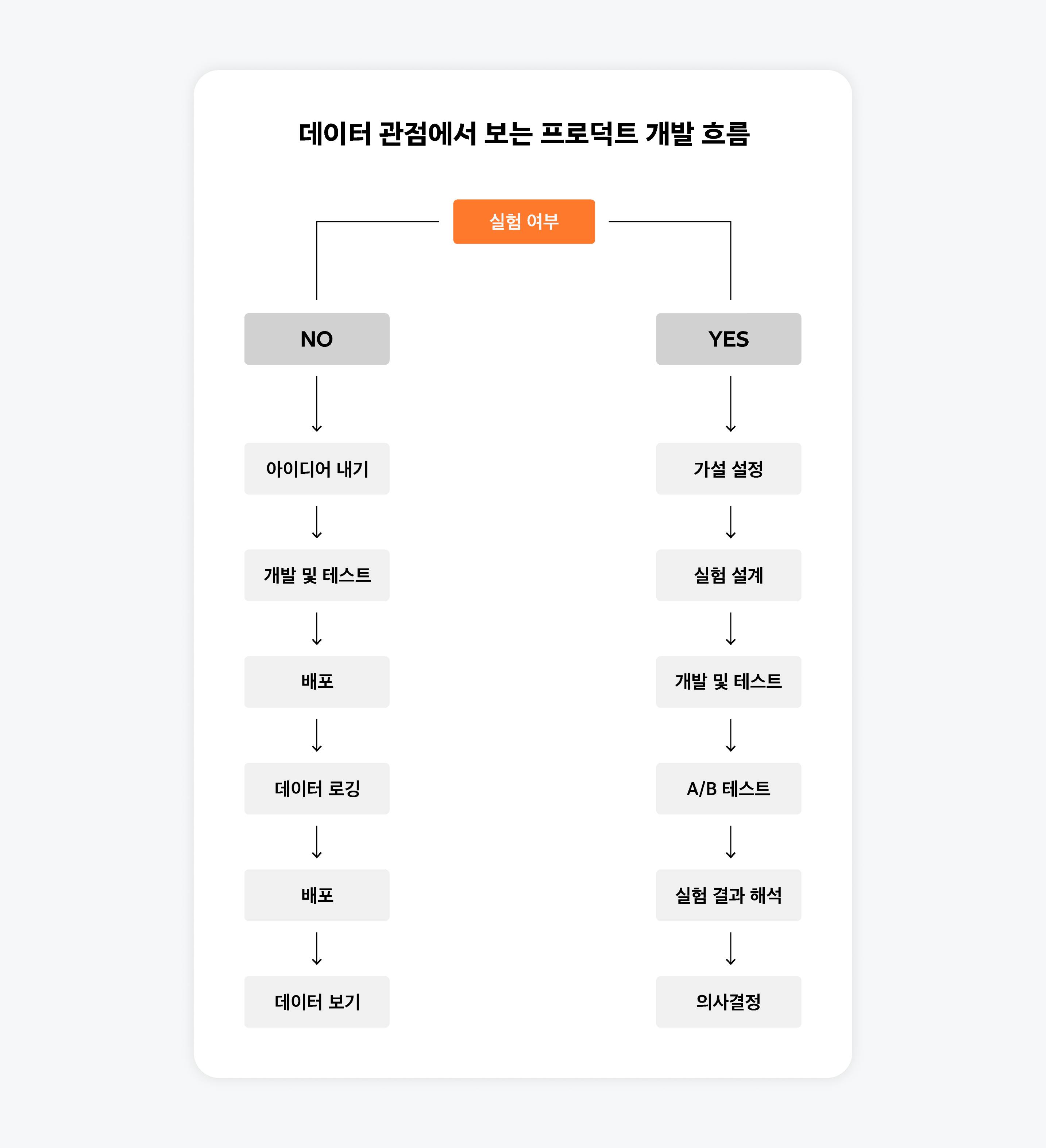 사실, 이전까지는 다음 도표에서 “실험을 하지 않을 때”의 흐름으로 프로덕트를 만들어왔어요.