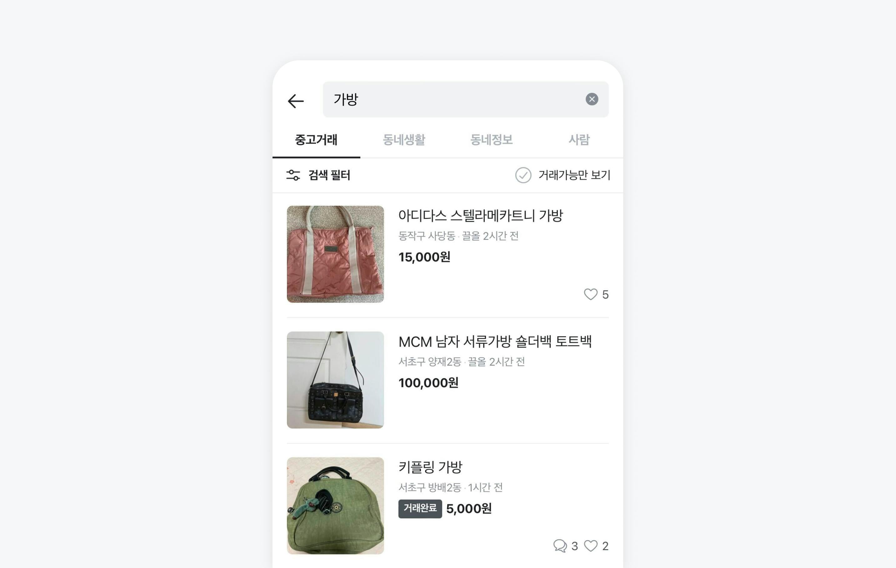 당근마켓은 상당히 초반부터 A/B 테스트를 활용하려고 노력해왔어요. 지금으로부터 3년 전, 한 팀원이 “검색 결과 화면에서 거래완료 게시글까지 디폴트로 모두 보여주면 어떨까?”라는 아이디어를 내놓은 적 있어요. ‘게시글을 쓸 때 판매완료된 게시글을 검색을 통해 많이 둘러보지 않을까?’라고 생각했던 거죠. 이때 A/B 테스트로 실험해보기로 했어요.